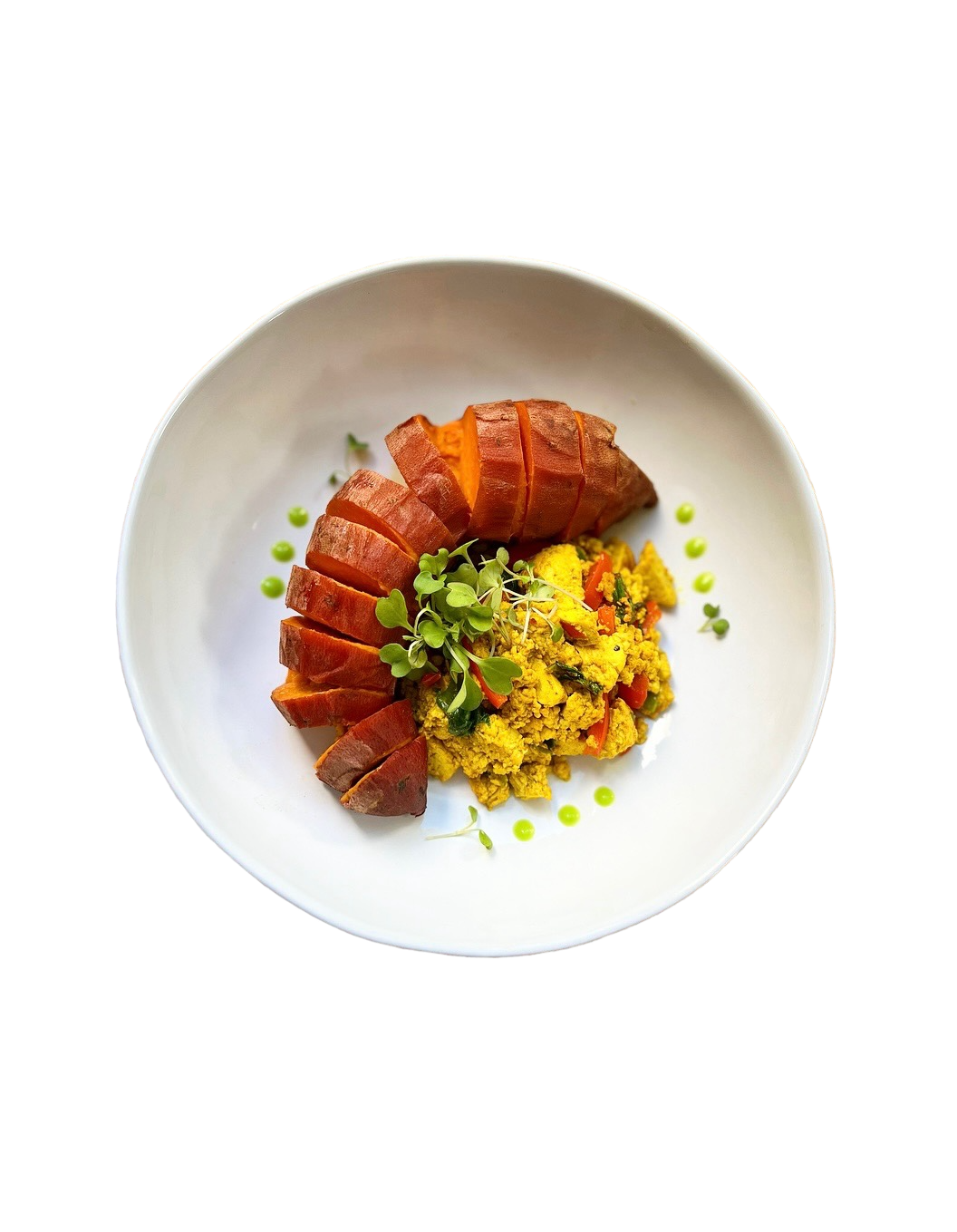 Breakfast: Turmeric Tofu Scramble w/ Roasted Sweet Potato & Sweet Pea Purée